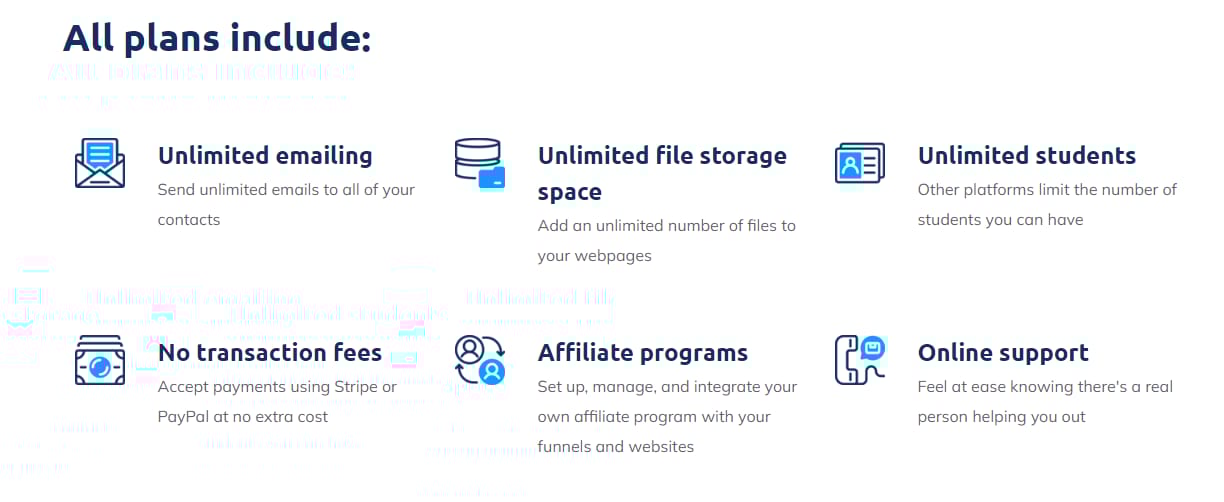 Unlimited Plan: $97 monthly, Includes unlimited contacts, unlimited sales funnel, unlimited blogs, unlimited automation rule, unlimited courses, and communities.